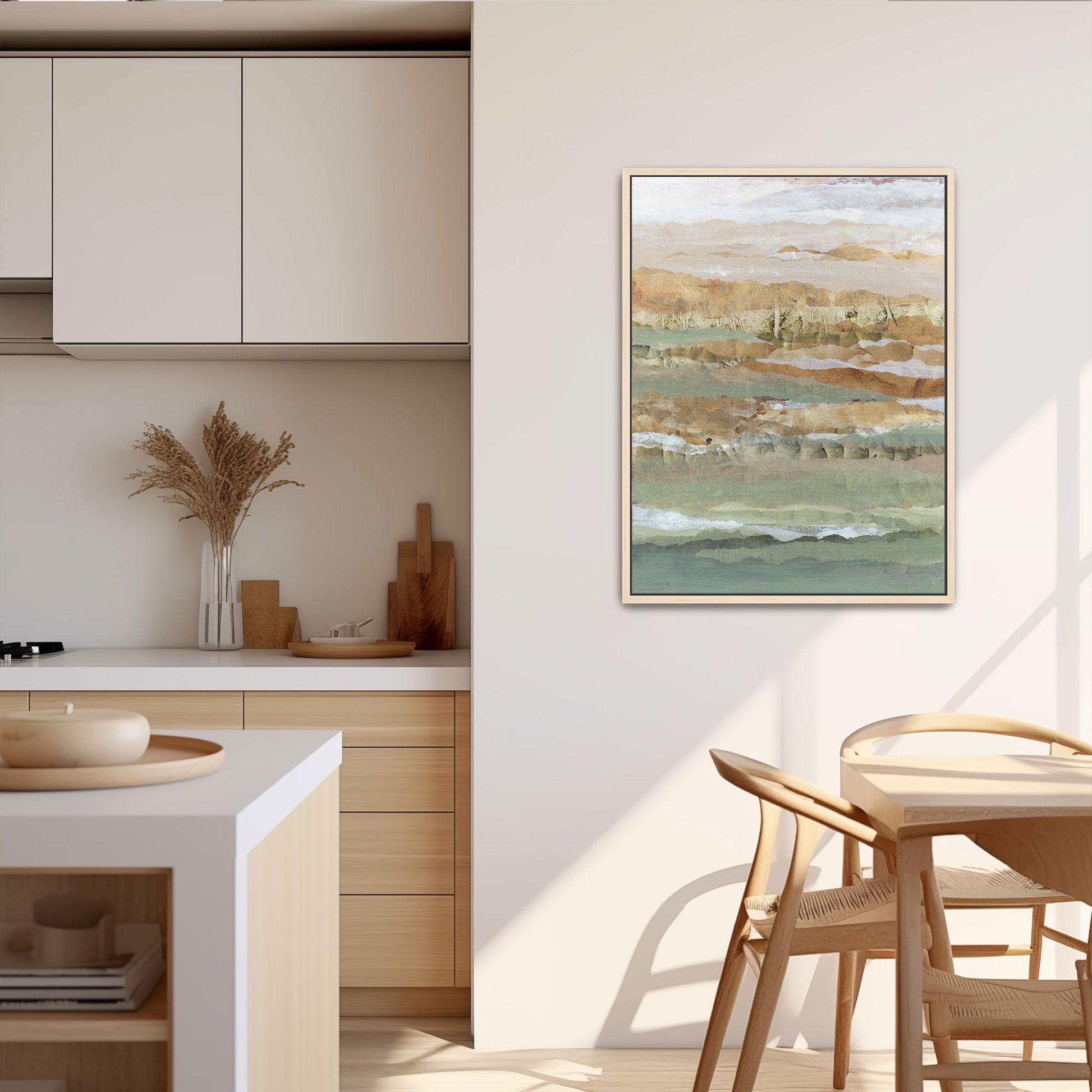 Elevate your print with our premium floating frame option! Made of a solid natural wood, this frame gives the illusion of your stretched canvas print floating inside the frame.